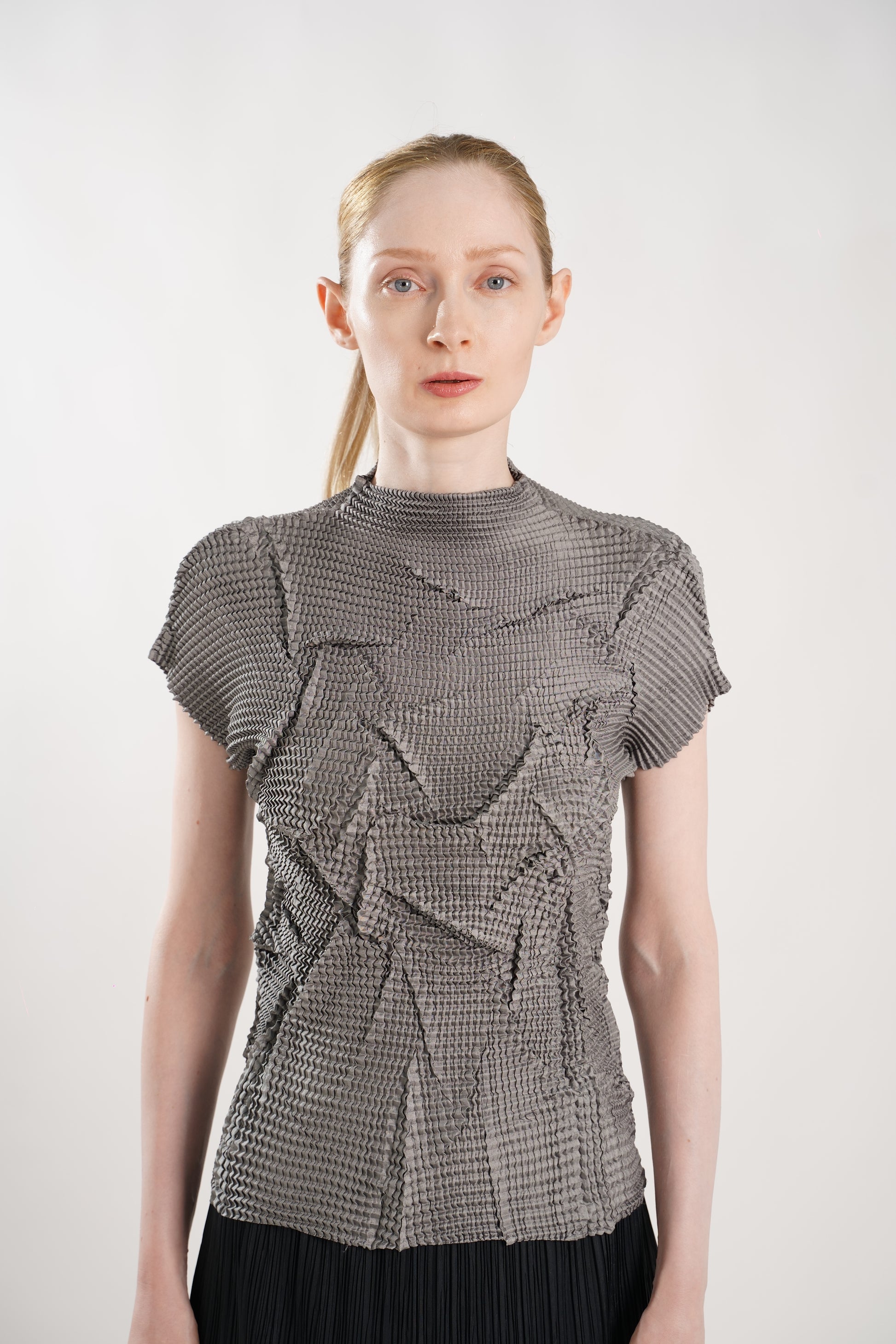 ランダムプリーツがしなやかに女性の身体にフィットします。